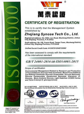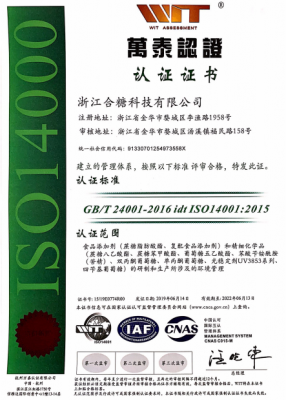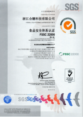 公司被評為“國家高新技術(shù)企業(yè)”,并有多個(gè)產(chǎn)品獲得“國內(nèi)發(fā)明專利”,通過了FSSC22000食品安全體系認(rèn)證,ISO14001環(huán)境管理體系,MUI HALAL認(rèn)證,SKS KOSHER認(rèn)證,ISO9001質(zhì)量管理體系和ISO22000食品安全管理體系認(rèn)證,并有多個(gè)產(chǎn)品通過了“歐洲REACH法規(guī)”注冊和“韓國REACH法規(guī)” 預(yù)注冊。
